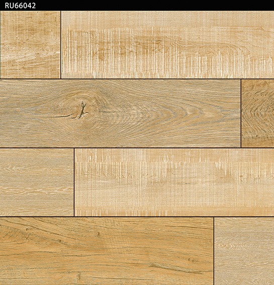 Textura: Superfície com padrão de réguas retangulares em efeito madeira, veios horizontais visíveis e diferenças de textura entre peças, dispostas em paginação desencontrada repetitiva